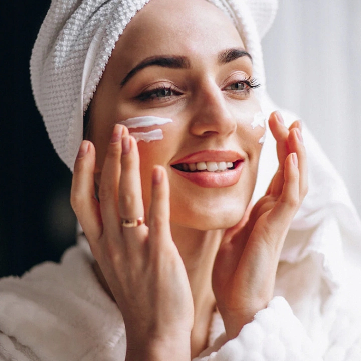 - Rozprowadź produkt w taki sposób, aby utworzył białą warstwę, którą należy wmasować do całkowitego wchłonięcia.