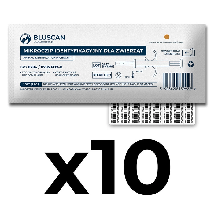 Mikrochip, Mikroczip – polecany dla niedużych zwierząt (pies, kot itp.) - Zestaw 10 szt.
